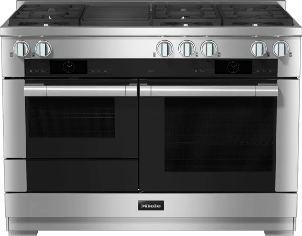 Miele's 48" Range includes M Touch Speed Oven, M Touch Convection Oven and Push-to-Open Warming Drawer.