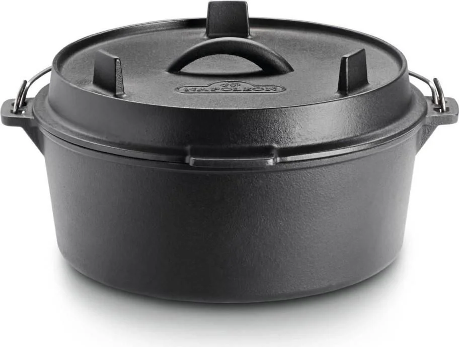 When it comes to cooking on the barbecue, this 6-quart, Cast Iron Dutch Oven is just right. Cast iron is one of the best conductors of heat. It retains and evenly distributes heat, ensuring even cooking and keeping food warm. The durable, porcelain-coated cast iron construction is easy to use and maintain. Slow cooking for large numbers is the perfect use for this accessory. Use it on the barbecue, and side burners, over or directly in charcoal, and even in your firepit. This versatile Cast Iron Dutch Oven is great at making soups, stews, beans, and even baking bread. Both the lid and bottom feature integrated legs and the lid even doubles as a cast-iron frying pan. Elevate your cooking wherever you are with the Cast Iron Dutch Oven.