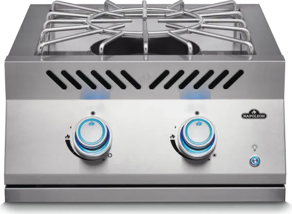 The 18-inch, two-stage, Power Burner for the Built-in 700 Series is a chef's dream. Ultimate temperature control with a high and low setting which makes cooking huge meals, like a seafood boil, or small items, like a fresh sauce, a total breeze. The control knobs with SafetyGlow make grilling after dark a breeze. Never accidentally leave a burner on, the lights change from cool blue to red when on. The no-fail, battery-free ignition lights immediately with a unique jet of flame. The two-piece stainless steel cooking grids hold large pots and the removable centre ring perfectly nests a wok pan. Include additional and convenient cooking area to your custom outdoor kitchen by including this drop-in power burner. The power supply kit N370-1091-SER is required for all Built-in 700 Series burners being used in an application without a Built-in 700 Series Built-in Grill in order to supply power for the control knobs.