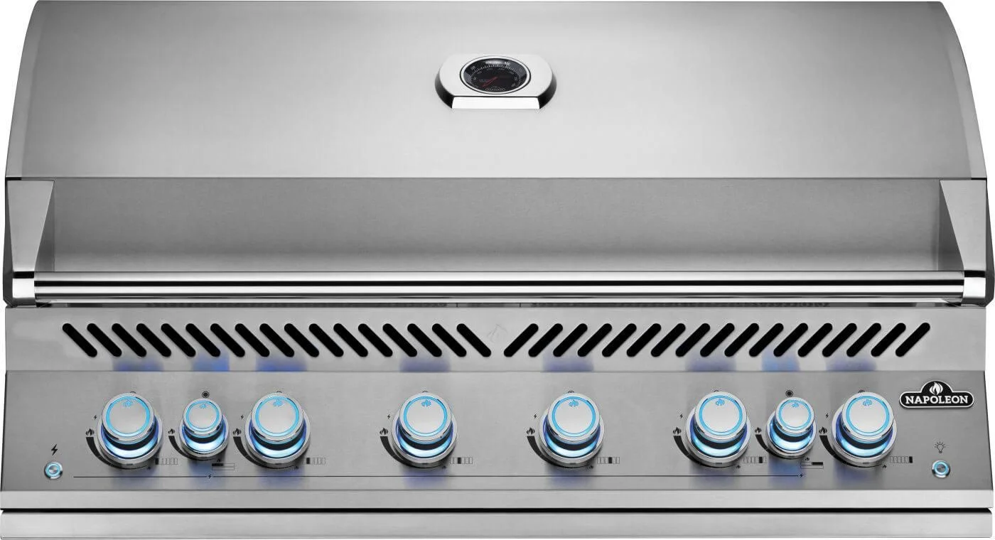 The Built-In 700 Series 44-inch Gas Grill with Rear Infrared Burner provides the high-quality grilling you have come to expect from Napoleon's gas barbecues. Built seamlessly into your ideal outdoor kitchen, the premium stainless construction ensures stylish longevity and unparalleled performance. Thick, 9-mm stainless steel cooking grids are virtually maintenance-free. Enjoy ambiance and safety while grilling, the control knobs glow blue, changing to red when burners are in use. Grilling past dark is a joy with the integrated halogen interior hood lights to illuminate your grilling surface. Angular grease management with a perforated design, channels drippings for improved grease collection and ease of cleaning, reducing buildup and risk of grease fires. The Built-In 700 Series 44-inch Gas Grill has been designed specifically for ease of installation with integrated trim, an extra long flex line, and longer electrical wiring for zero design and functionality restrictions on install.