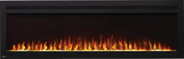 The Purview series offers 5 different widths from as small as 42 up to 100 wide. With either a wall mount (wall bracket included) or recessed installation the Purview Series Electric Linear Fireplaces are a great choice for any room and any project. Low and High heat functions as well as being able to run the fireplace with no heat at all provides comfort and use year round! A beautiful crystal ember bed showcases the orange and cool white LED flame colors. The Purview series can be used by timer setting between 30 minutes and 8 hours and also can be operated with the convenience of a remote control or touch screen panel.