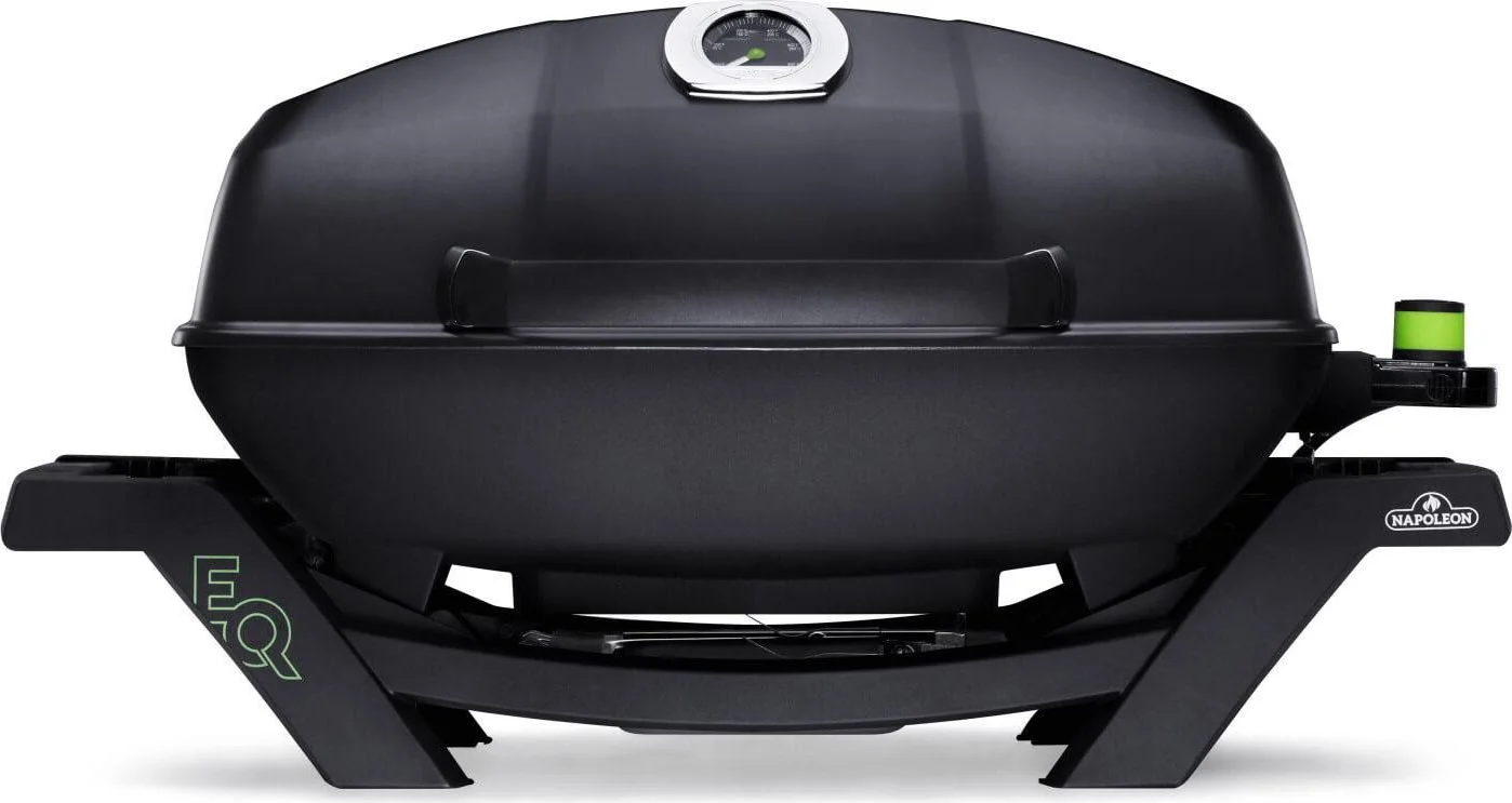 Napoleon's TravelQ PRO285 Portable Electric Grill is stylish, all-black with a cast aluminum, high-topped lid design lets you take portable grilling to the gourmet level. The windproof design will hold heat in. High heat searing is a snap and you'll know it's a Napoleon with the iconic WAVE cooking grids for those distinctive sear marks. Like your favorite cast iron skillet, the porcelain coated cast iron cooking grids heat evenly and provide a non-stick surface for your food, seasoning like a cast iron skillet. The thermostat and burners are removable for quick and easy cleaning of the porcelain drip tray. Easy to carry and set up, this grill is perfect for any adventure. You can't beat this professional grill in a portable package.
