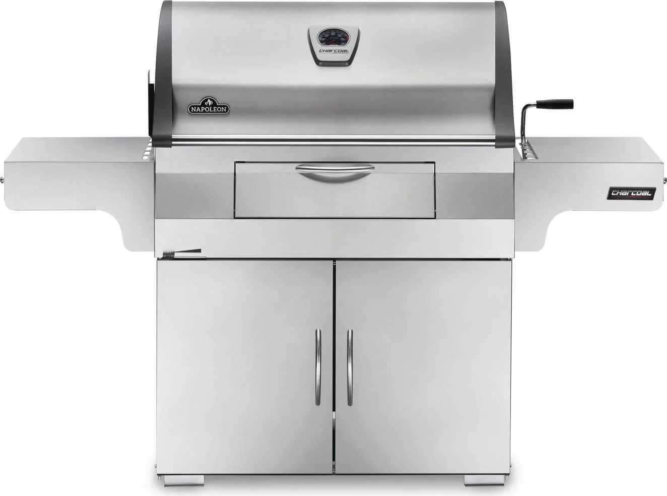The Napoleon Charcoal Professional Grill takes traditional charcoal grilling to new heights with the stability and features of cart model gas grilling in a huge charcoal BBQ. Durable and beautiful stainless steel construction makes this charcoal grill ideal for every environment. You can add charcoal on the fly with the front loading charcoal door. The adjustable charcoal bed and sliding air vents make heat management a breeze. Lower the charcoal bed for easy roasting, or raise it up for high heat searing. You'll know it's a Napoleon with the iconic WAVE cooking grids for those distinctive sear marks. The most unique feature of the Charcoal Professional has to be the charcoal powered rotisserie burner. The slide-out ash and drip pan keeps cleanup simple. Experience the height of professional charcoal grilling with the Napoleon stainless steel Charcoal Professional Grill.