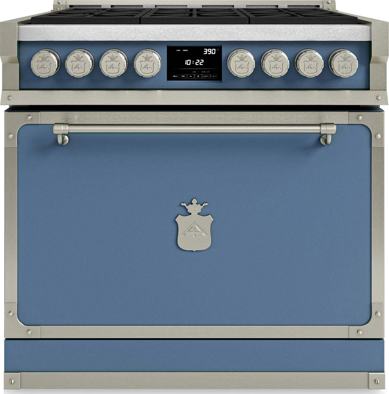 The distinctive features of the Dual Fuel version are the fine brass double burners and the hefty cast iron grills that offer durability and refinement to the cooking surfaces. Lower down, the Fiorentina 30” encompasses customary luxury design details, such as solid yet elegant brass handles, while the intuitive touch-screen display panel enables optimal cooking control. The oven, equipped with double ventilation for total heat distribution, ensures that every recipe is exquisitely cooked. Telescopic slides made from hardy materials mean that dishes can be removed easily for a straightforward check. The wide door comes complete with an assisted shock-absorbent closure system.