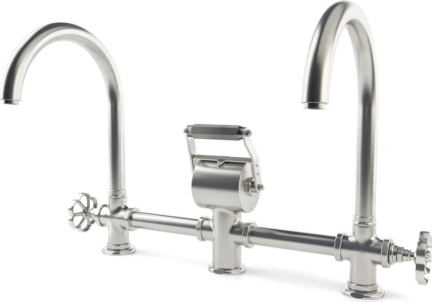 The depth and body of the noble metals – the solid brass castings – with which the faucets are made, is immediately evident. This is directly confirmed by the weight of each faucet. The materials chosen are treated to meet no-lead standards and ensure longevity.
