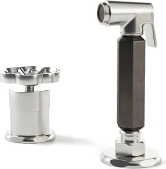 Officine Gullo SPRAY FAUCET WITH “PETAL” KNOBS in SATIN NICKEL