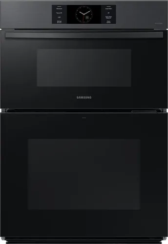 The Matte Black Samsung Bespoke 30" Microwave Combination Wall Oven with Flex Duo(TM) features stunning glass and steel finishes that complement other Bespoke appliances in your kitchen.