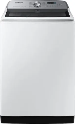 Samsung's 5.5 cu. ft. extra-large capacity smart top load washer in white features the Super Speed Wash setting, which thoroughly washes a full load in just 28 minutes for a fast wash cycle.