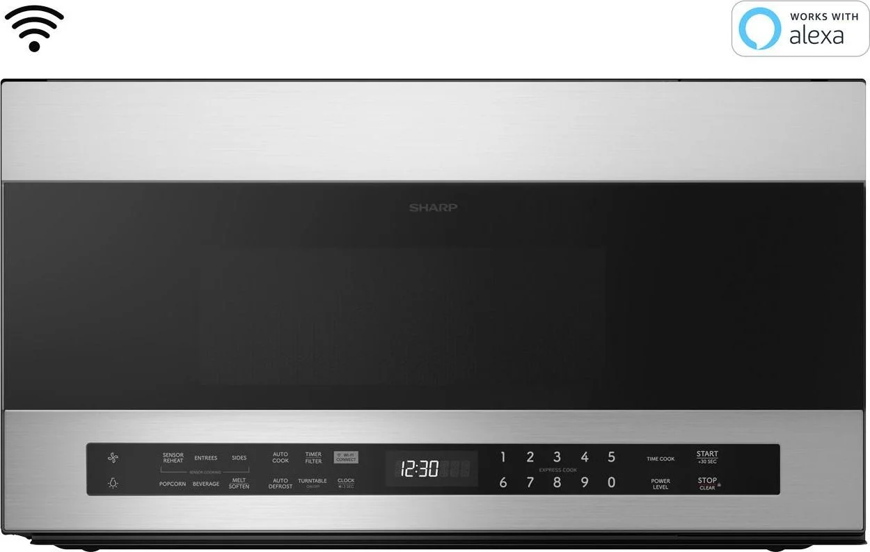 The Sharp(R) SMO1969JS Over-the-Range Microwave Oven is a contemporary and stylish addition to your dream kitchen. With edge-to-edge stainless steel, and black glass, this oven pairs beautifully with other stainless steel appliances. The easy-to-read, white display, gray interior and bright LED interior and cooktop lighting are elegant finishing touches for your modern kitchen.