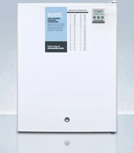 Thermometer probe is encased in a glycol-filled bottle to better simulate the temperature of stored contents instead of refrigerator air temperature