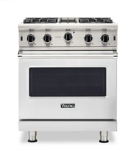 •Heavy-duty, porcelainized, cast-iron removable surface grates provide continuous front-to-rear, left-to-right surface for easy movement of large pots