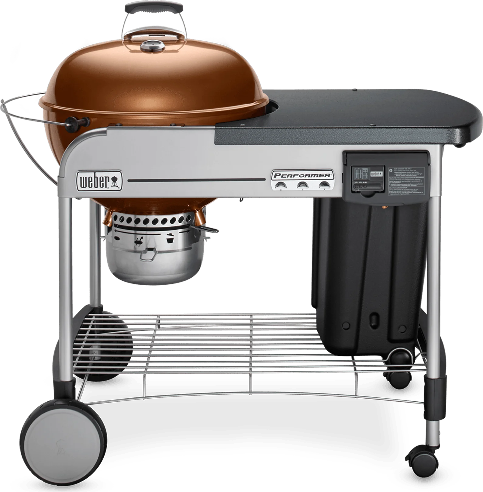 The electronic Touch-N-Go gas ignition system allows you to ignite charcoal with the push of a button