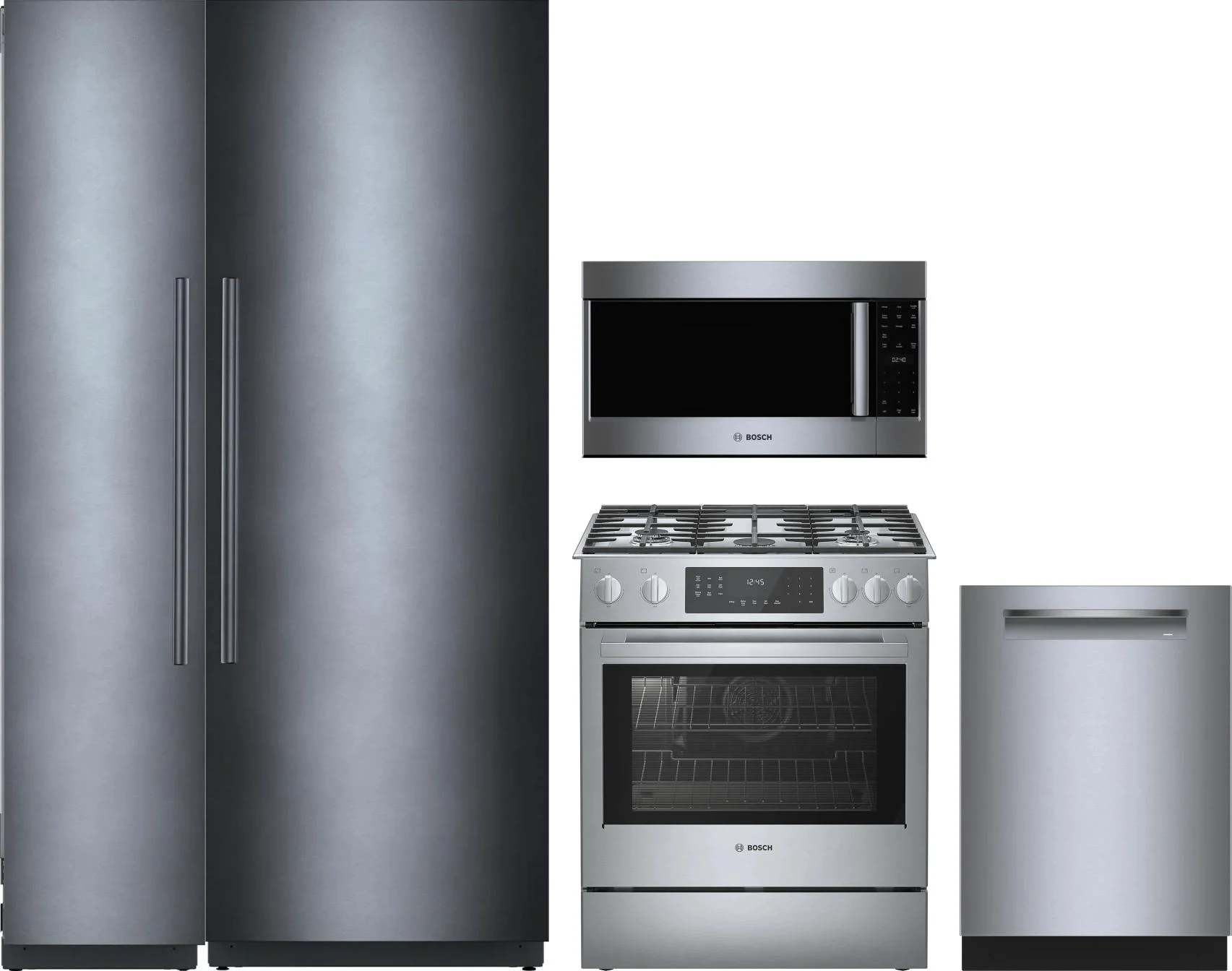 Bosch 5 Piece Package Includes Refrigerator, Freezer, Range, Microwave And Dishwasher