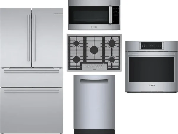 Bosch 5 Piece Package Includes Refrigerator, Cooktop, Wall Oven, Microwave And Dishwasher
