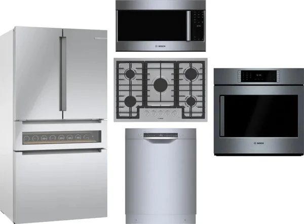 Bosch 5 Piece Package Includes Refrigerator, Cooktop, Wall Oven, Microwave And Dishwasher