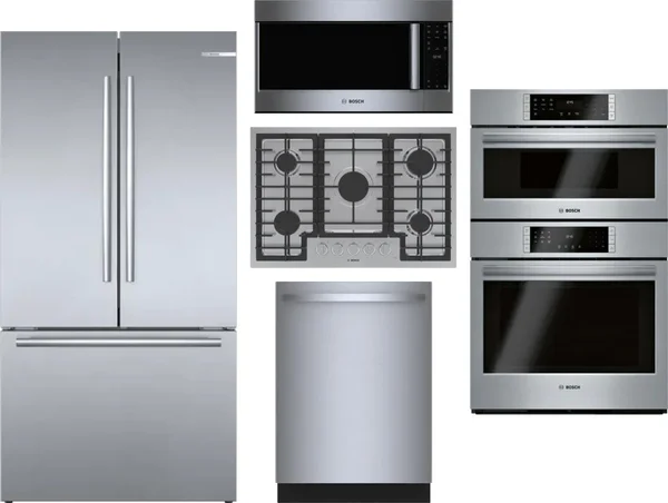 Bosch 5 Piece Package Includes Refrigerator, Cooktop, Wall Oven, Microwave And Dishwasher