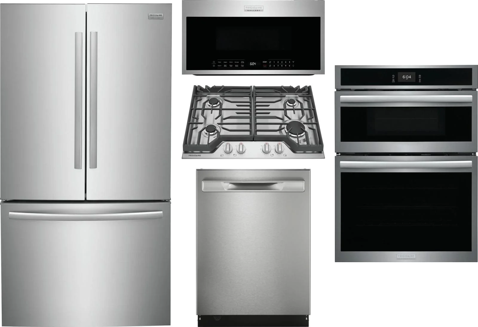Frigidaire 5 Piece Package Includes Refrigerator, Cooktop, Wall Oven, Microwave And Dishwasher