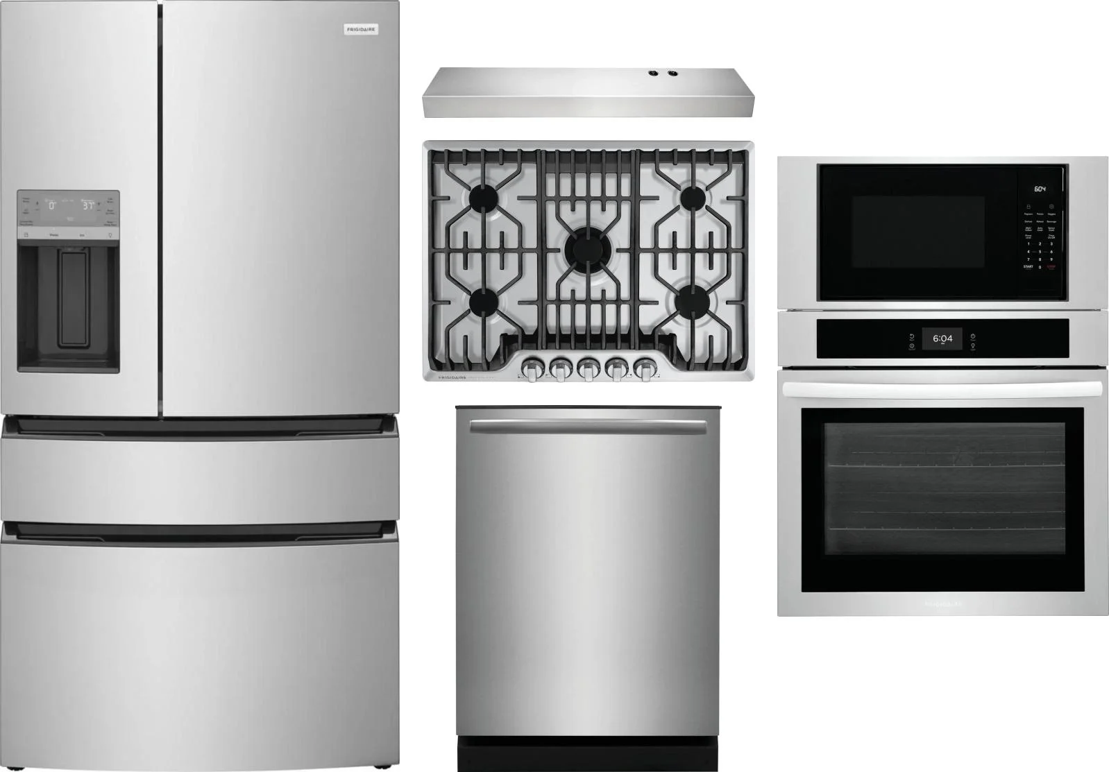 Frigidaire 5 Piece Package Includes Refrigerator, Cooktop, Wall Oven, Hood And Dishwasher in Stainless Steel