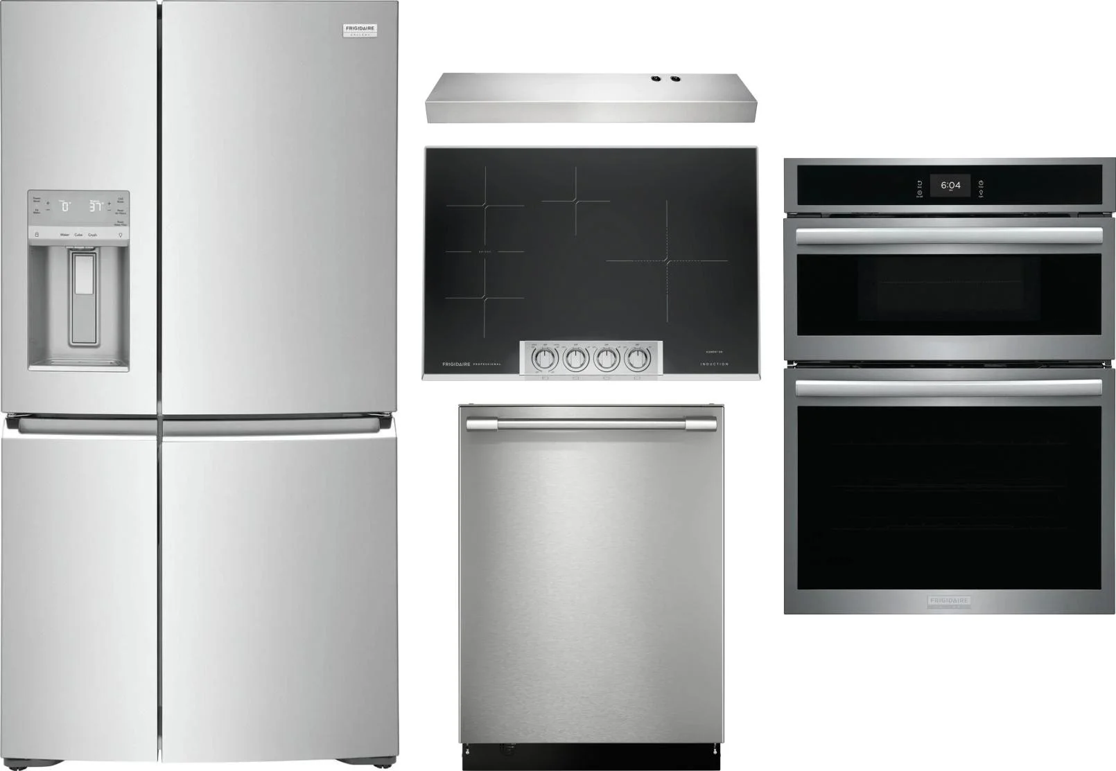 Frigidaire 5 Piece Package Includes Refrigerator, Cooktop, Wall Oven, Hood And Dishwasher in Stainless Steel