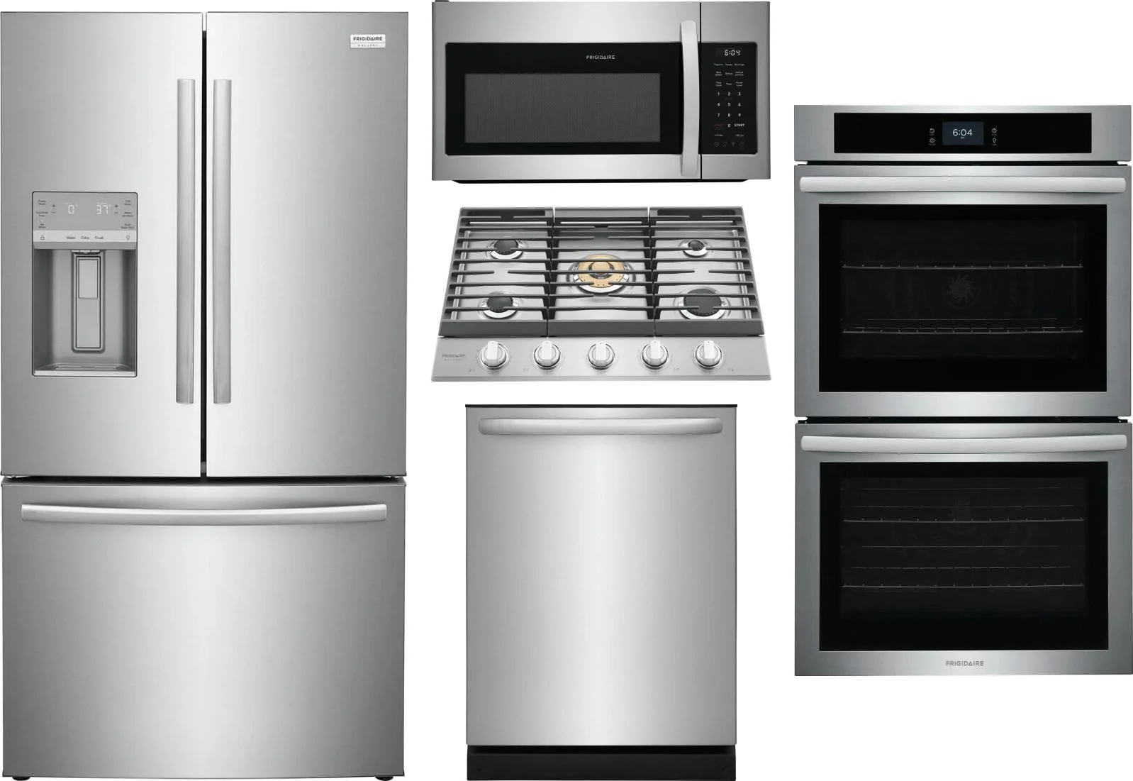 Frigidaire 5 Piece Package Includes Refrigerator, Cooktop, Wall Oven, Microwave And Dishwasher