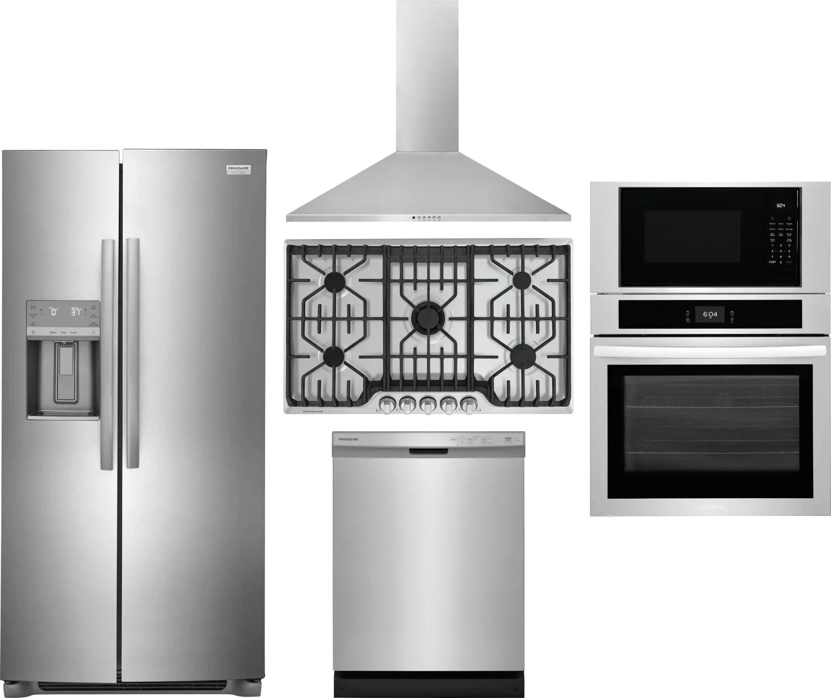 Frigidaire 5 Piece Package Includes Refrigerator, Cooktop, Wall Oven, Hood And Dishwasher in Stainless Steel