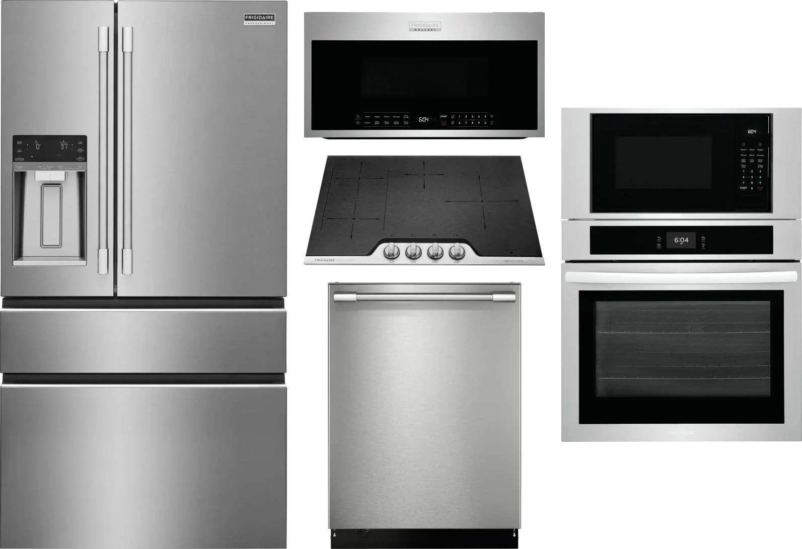 Frigidaire 5 Piece Package Includes Refrigerator, Cooktop, Wall Oven, Microwave And Dishwasher in Stainless Steel
