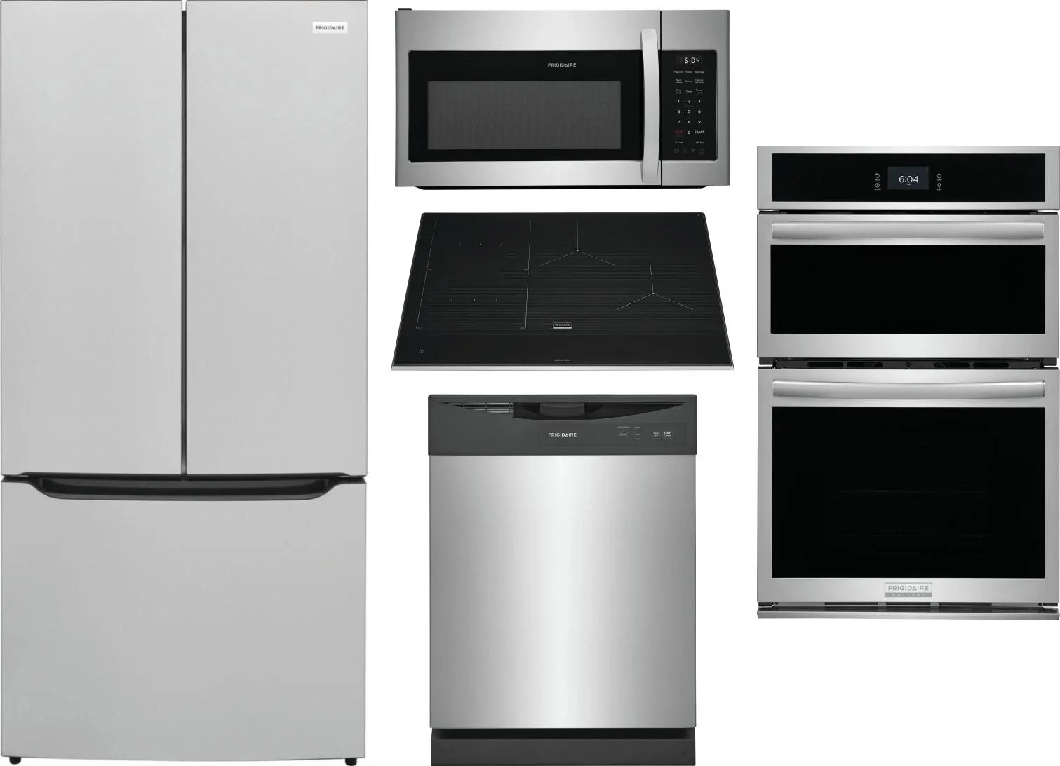 Frigidaire 5 Piece Package Includes Refrigerator, Cooktop, Wall Oven, Microwave And Dishwasher in Stainless Steel