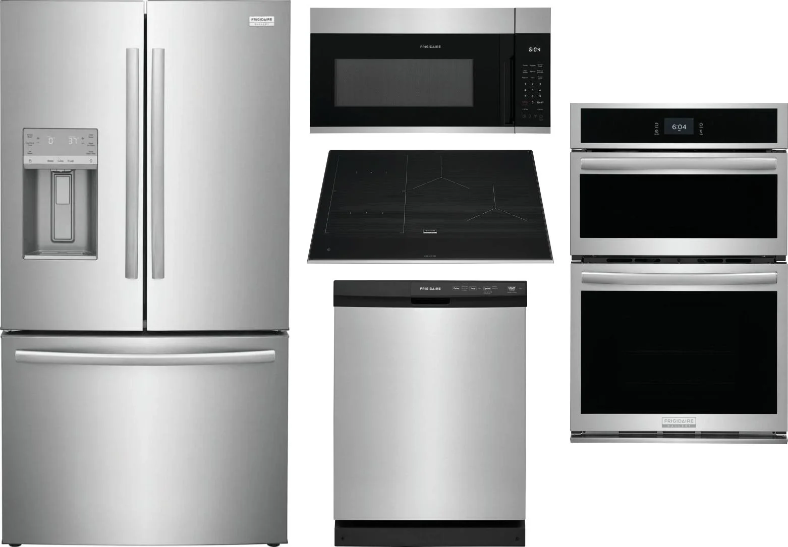 Frigidaire 5 Piece Package Includes Refrigerator, Cooktop, Wall Oven, Microwave And Dishwasher
