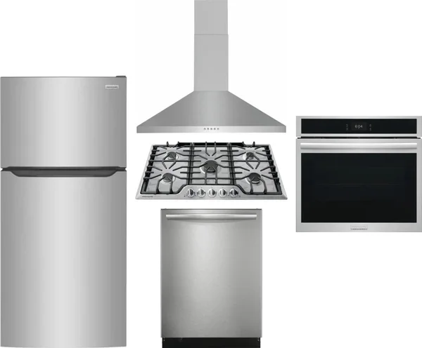 Frigidaire 5 Piece Package Includes Refrigerator, Cooktop, Wall Oven, Hood And Dishwasher in Stainless Steel