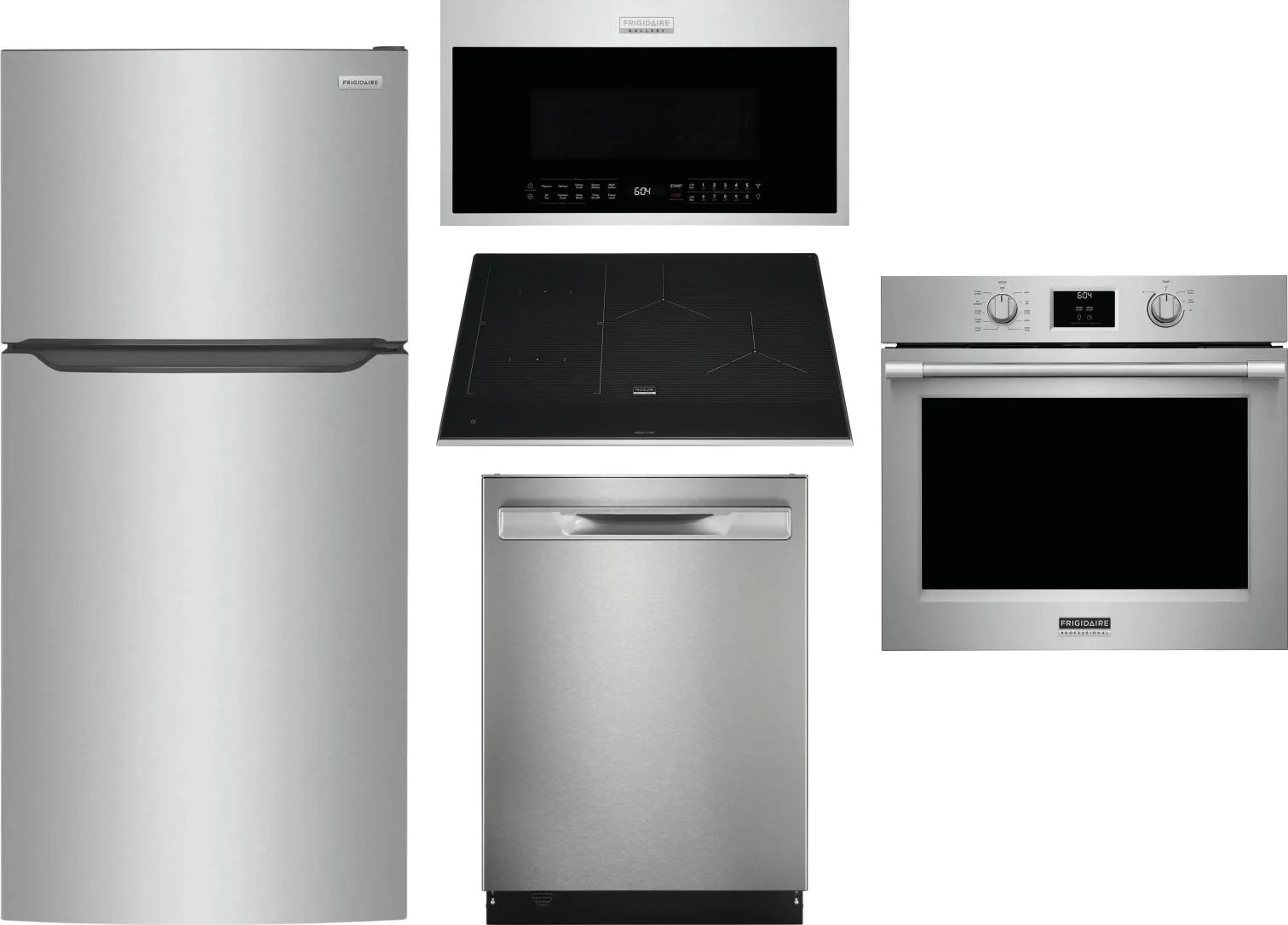 Frigidaire 5 Piece Package Includes Refrigerator, Cooktop, Wall Oven, Microwave And Dishwasher