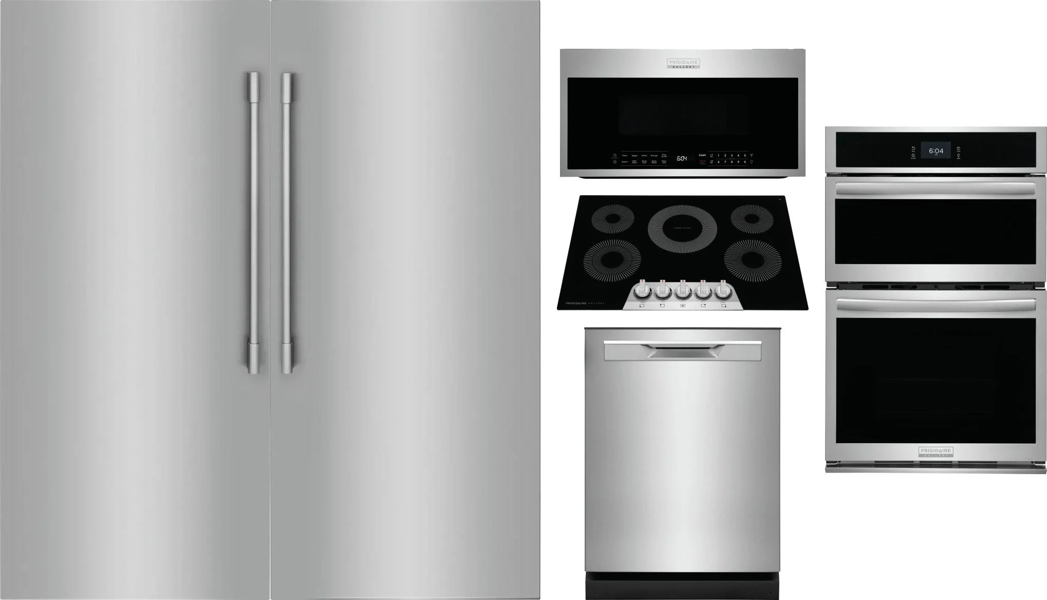 Frigidaire 6 Piece Package Includes Refrigerator, Freezer, Cooktop, Wall Oven, Microwave And Dishwasher
