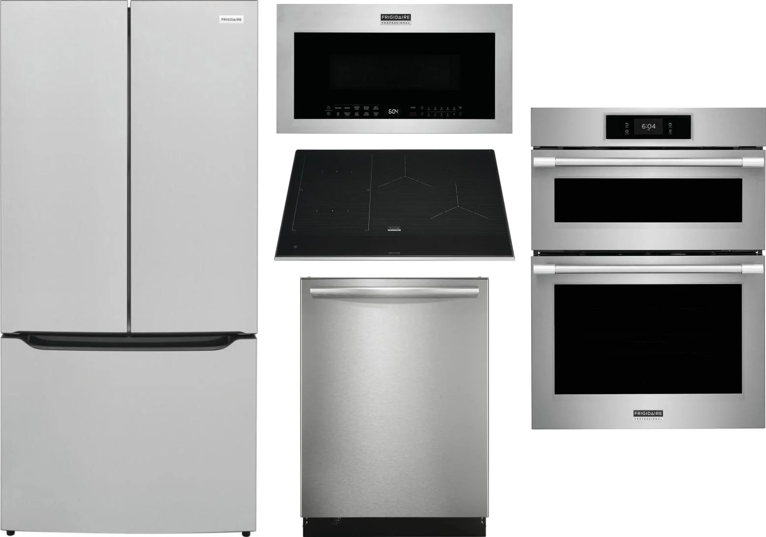 Frigidaire 5 Piece Package Includes Refrigerator, Cooktop, Wall Oven, Microwave And Dishwasher in Stainless Steel