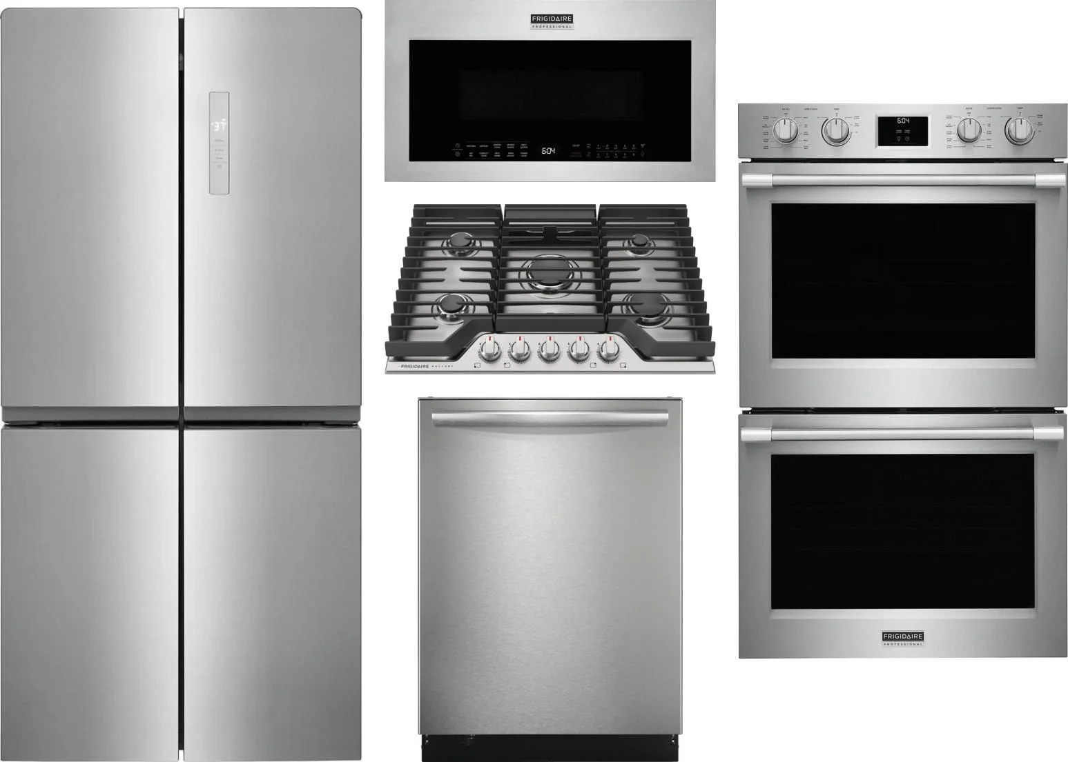 Frigidaire 5 Piece Package Includes Refrigerator, Cooktop, Wall Oven, Microwave And Dishwasher