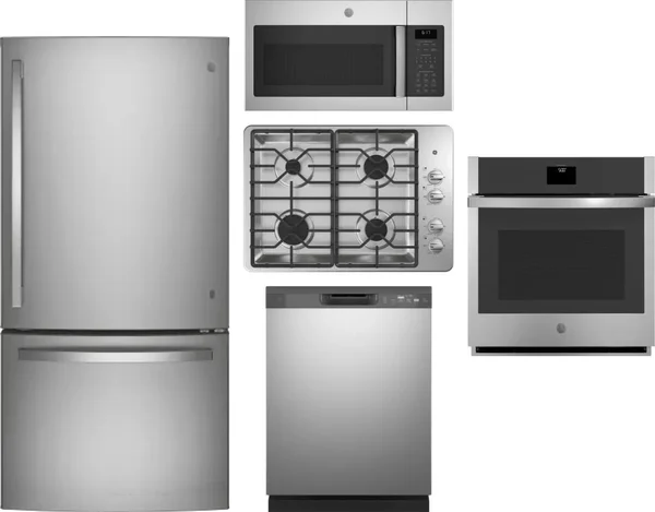 GE 5 Piece Package Includes Refrigerator, Cooktop, Wall Oven, Microwave And Dishwasher