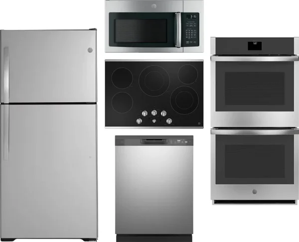 GE 5 Piece Package Includes Refrigerator, Cooktop, Wall Oven, Microwave And Dishwasher