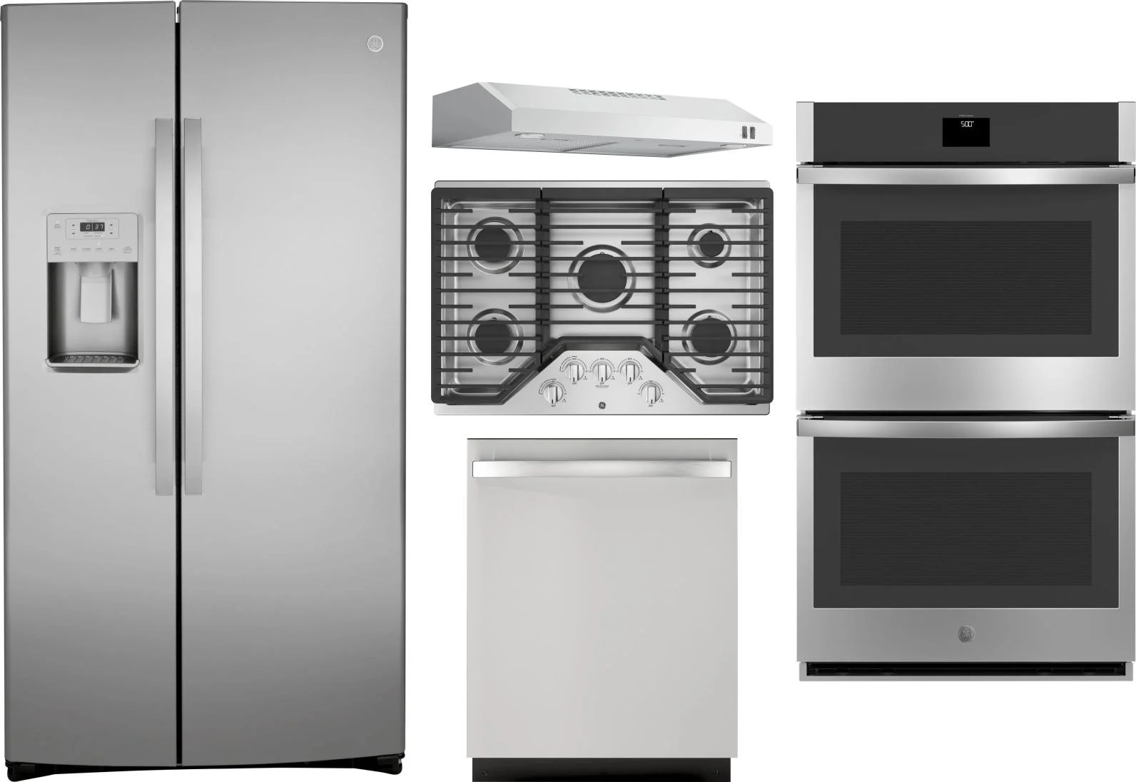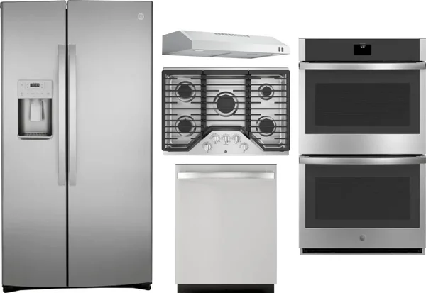 GE 5 Piece Package Includes Refrigerator, Cooktop, Wall Oven, Hood And Dishwasher