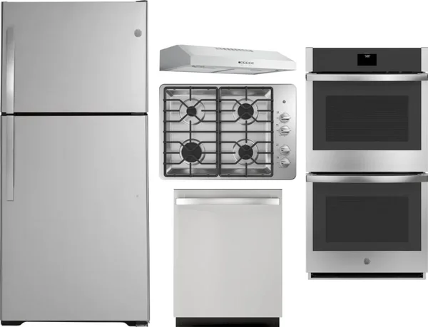 GE 5 Piece Package Includes Refrigerator, Cooktop, Wall Oven, Hood And Dishwasher