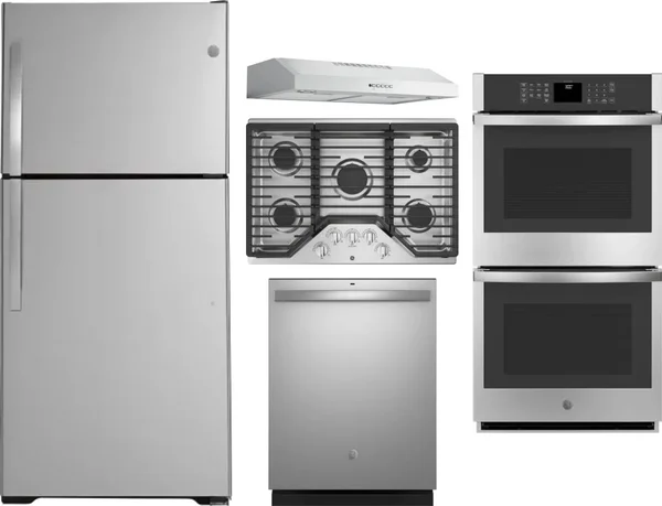 GE 5 Piece Package Includes Refrigerator, Cooktop, Wall Oven, Hood And Dishwasher