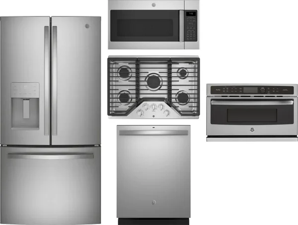GE 5 Piece Package Includes Refrigerator, Cooktop, Wall Oven, Microwave And Dishwasher