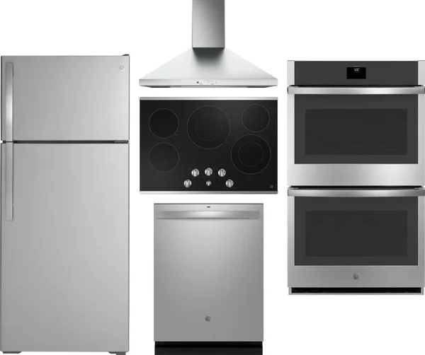 GE 5 Piece Package Includes Refrigerator, Cooktop, Wall Oven, Hood And Dishwasher