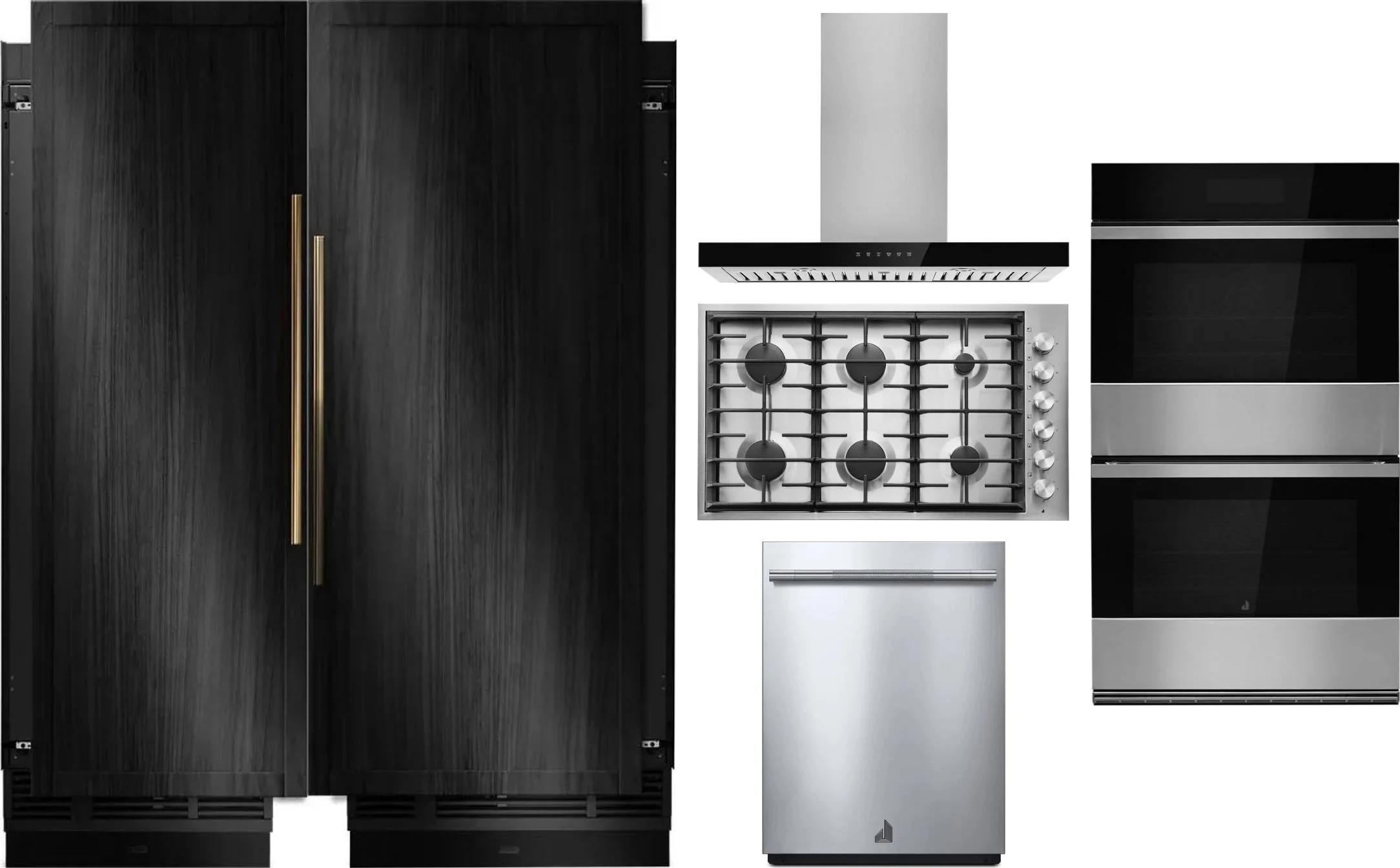 JennAir 6 Piece Package Includes Refrigerator, Freezer, Cooktop, Wall Oven, Hood And Dishwasher