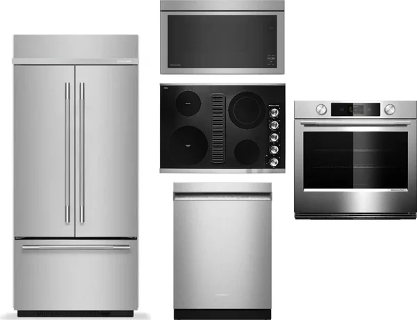 KitchenAid 5 Piece Package Includes Refrigerator, Cooktop, Wall Oven, Microwave And Dishwasher