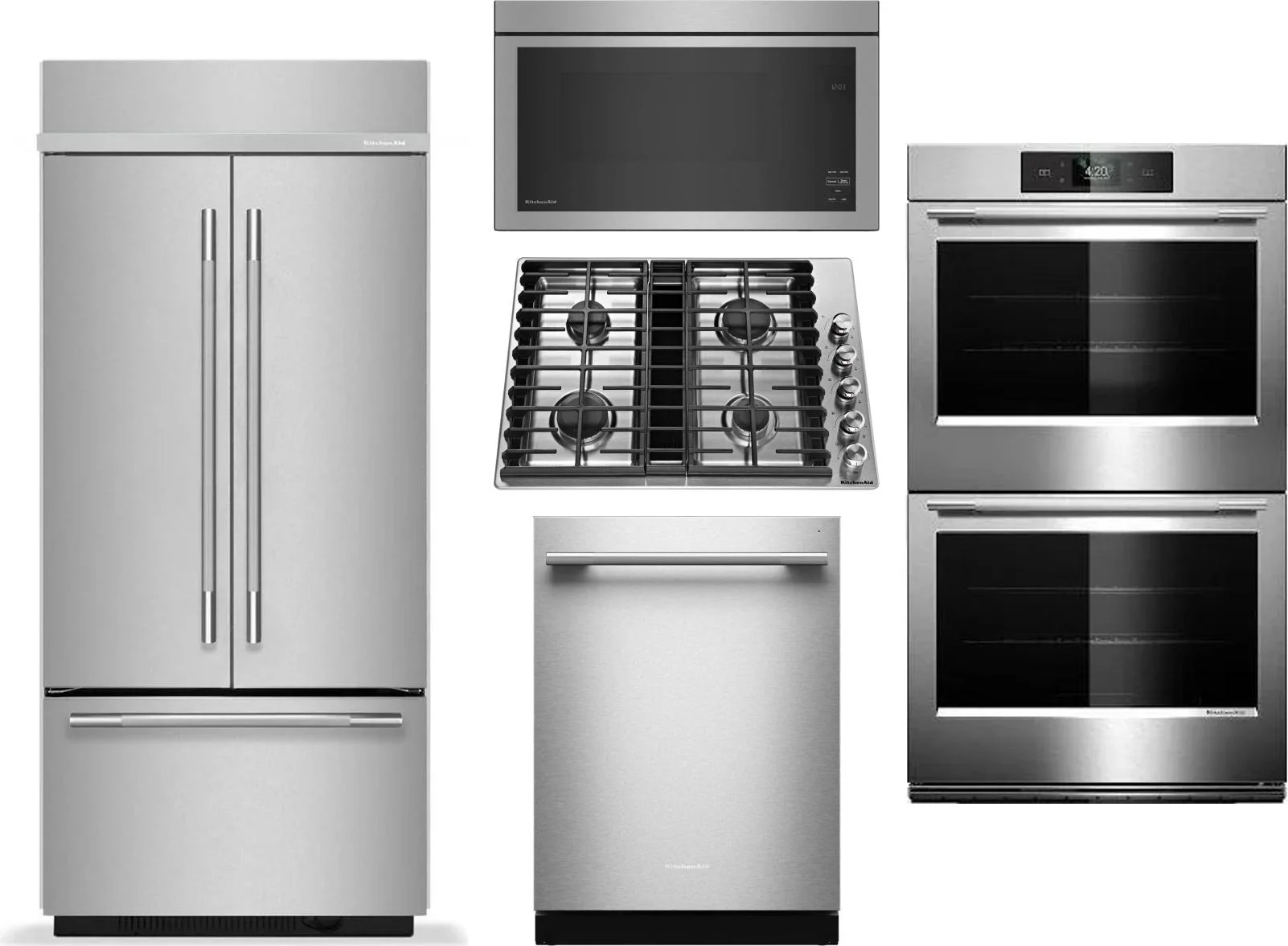 KitchenAid 5 Piece Package Includes Refrigerator, Cooktop, Wall Oven, Microwave And Dishwasher