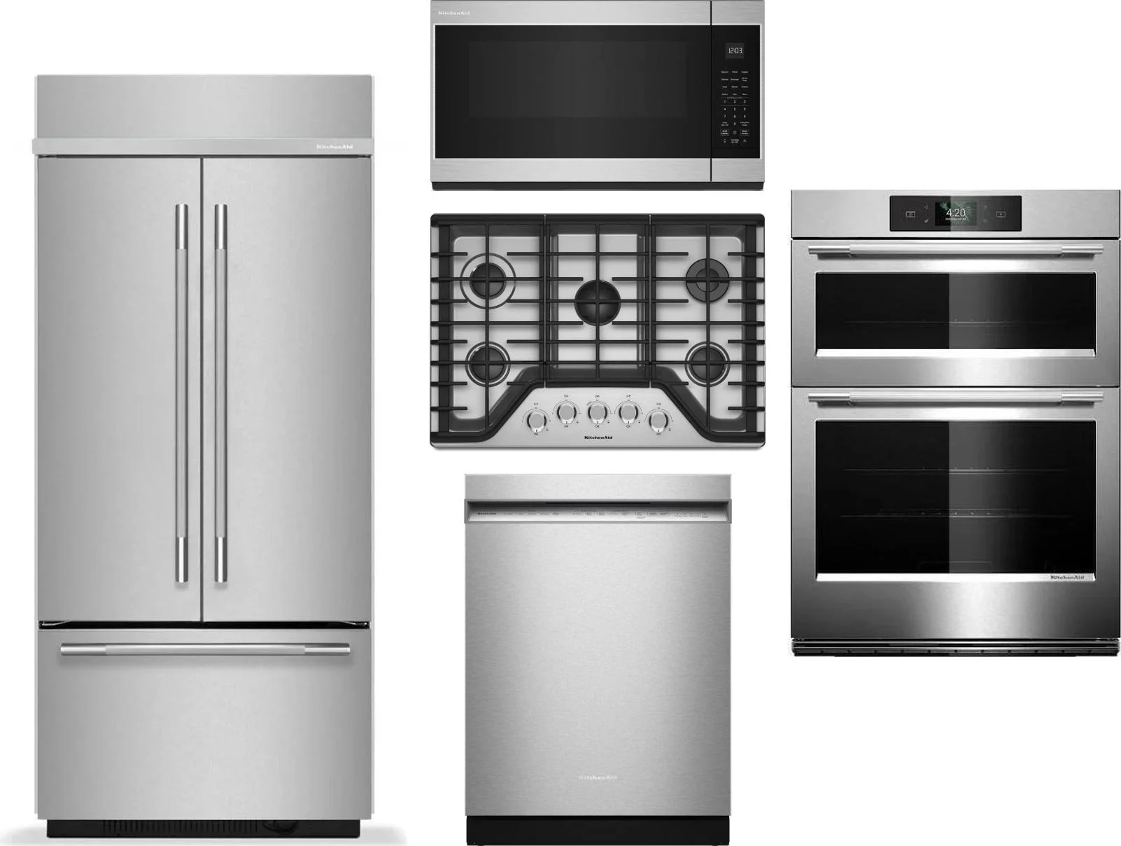 KitchenAid 5 Piece Package Includes Refrigerator, Cooktop, Wall Oven, Microwave And Dishwasher