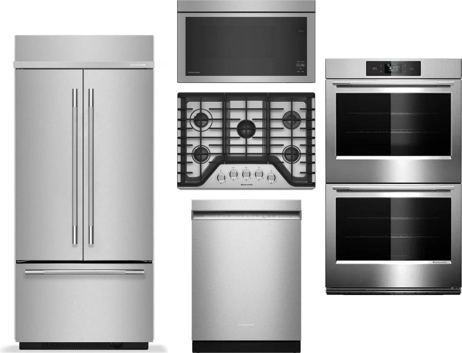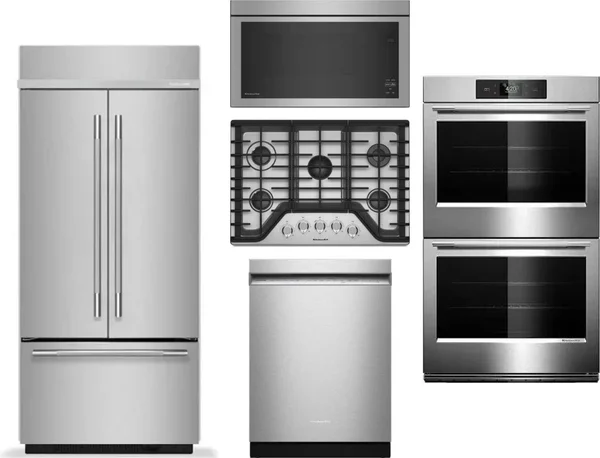 KitchenAid 5 Piece Package Includes Refrigerator, Cooktop, Wall Oven, Microwave And Dishwasher