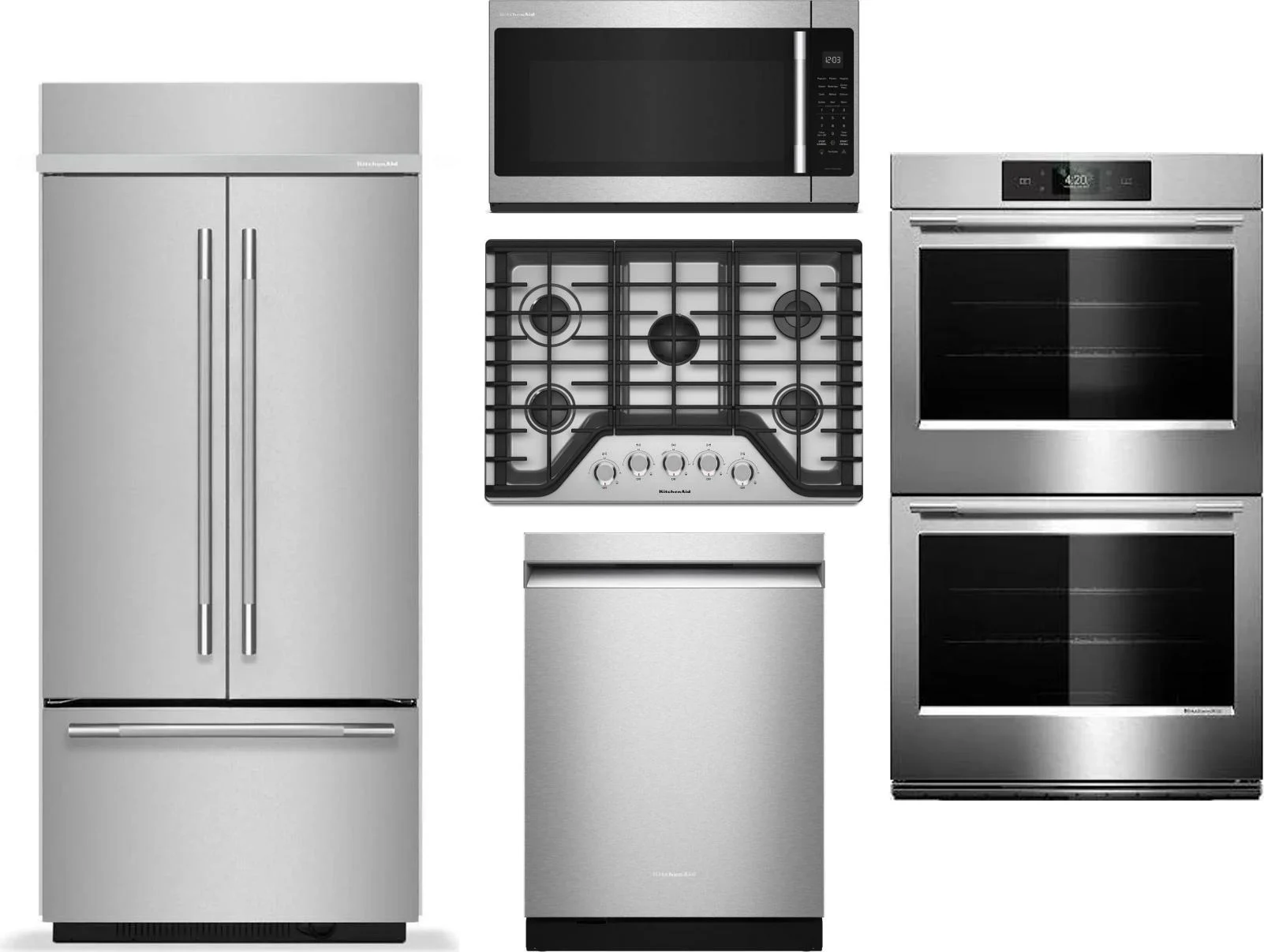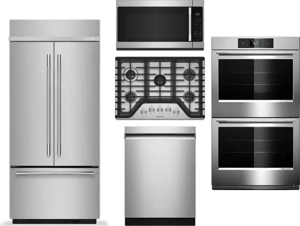 KitchenAid 5 Piece Package Includes Refrigerator, Cooktop, Wall Oven, Microwave And Dishwasher