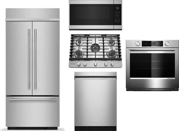 KitchenAid 5 Piece Package Includes Refrigerator, Cooktop, Wall Oven, Microwave And Dishwasher