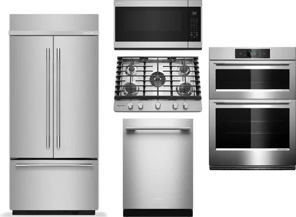 KitchenAid 5 Piece Package Includes Refrigerator, Cooktop, Wall Oven, Microwave And Dishwasher
