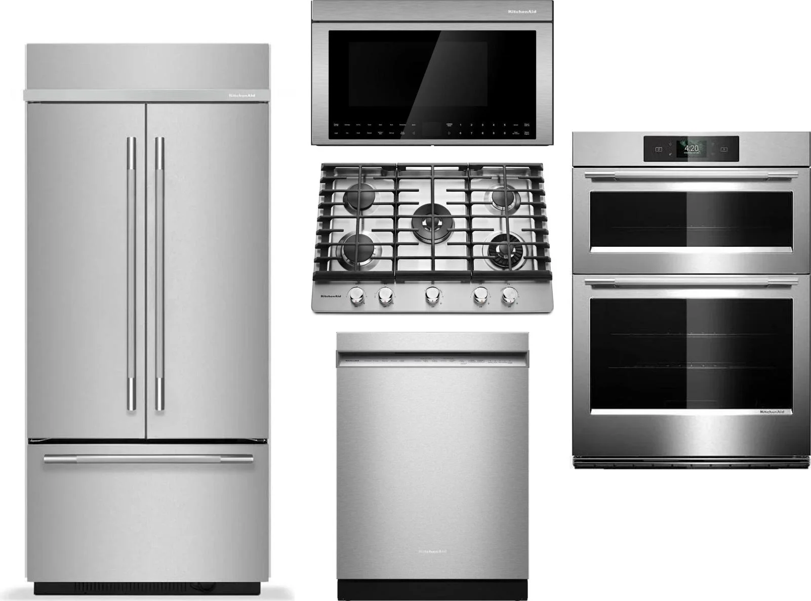 KitchenAid 5 Piece Package Includes Refrigerator, Cooktop, Wall Oven, Microwave And Dishwasher