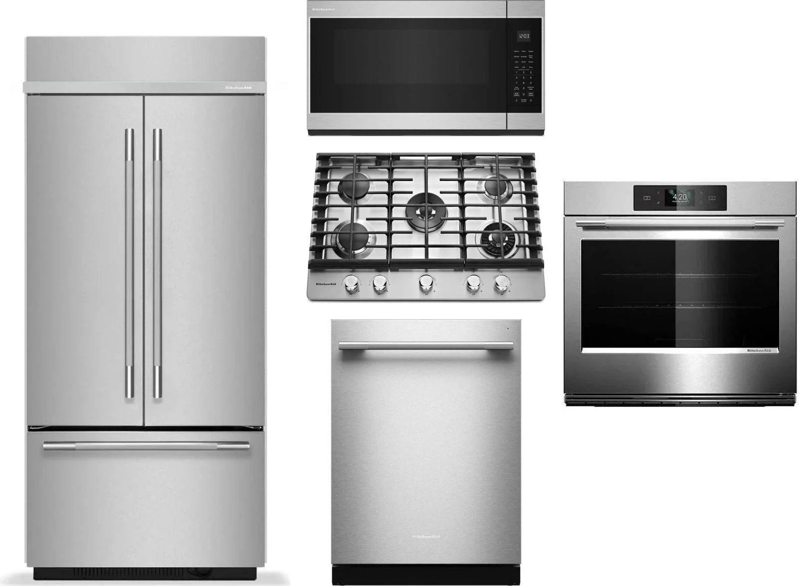 KitchenAid 5 Piece Package Includes Refrigerator, Cooktop, Wall Oven, Microwave And Dishwasher